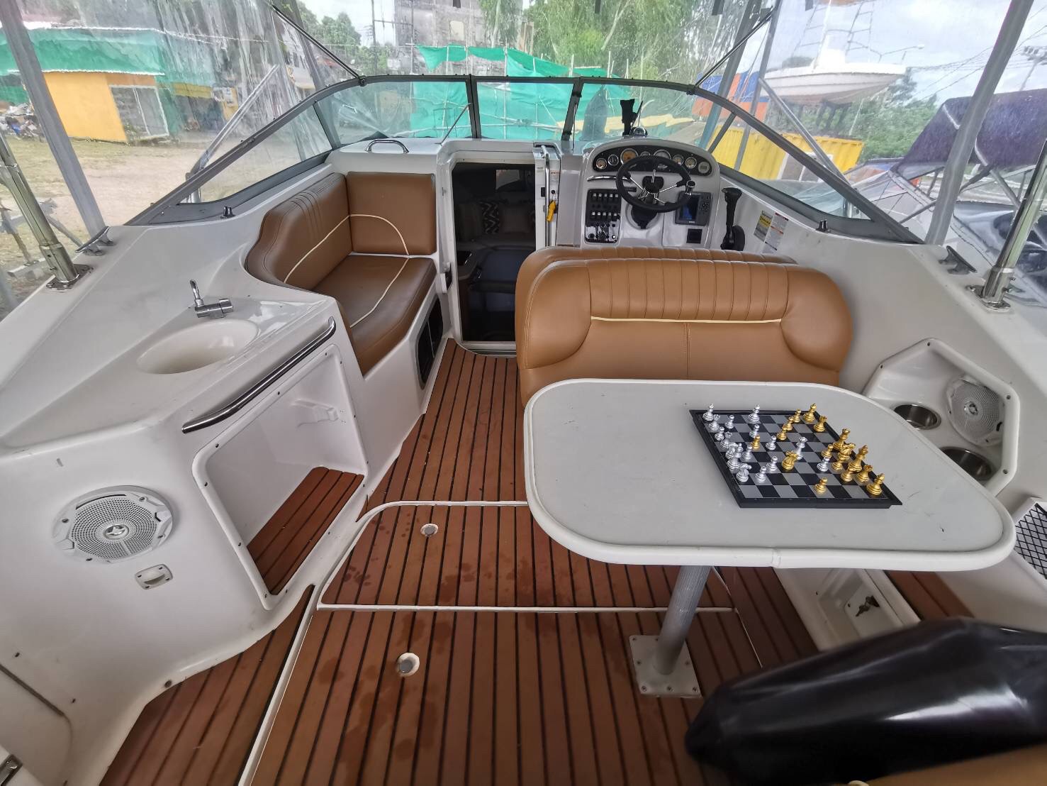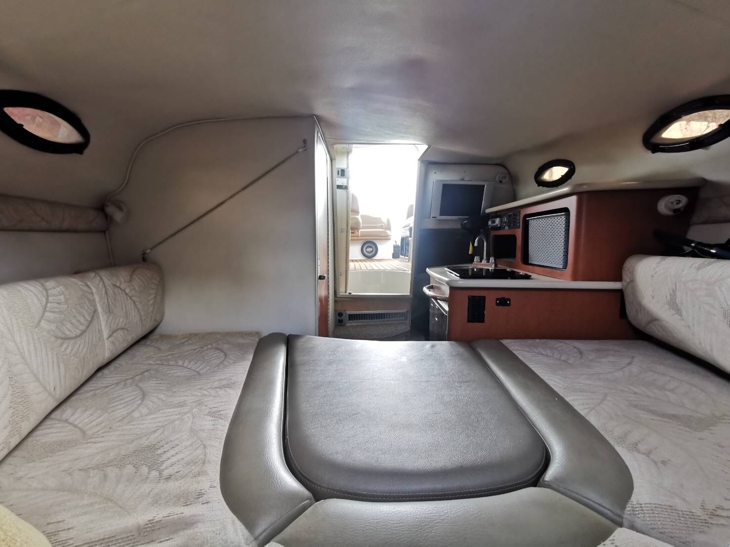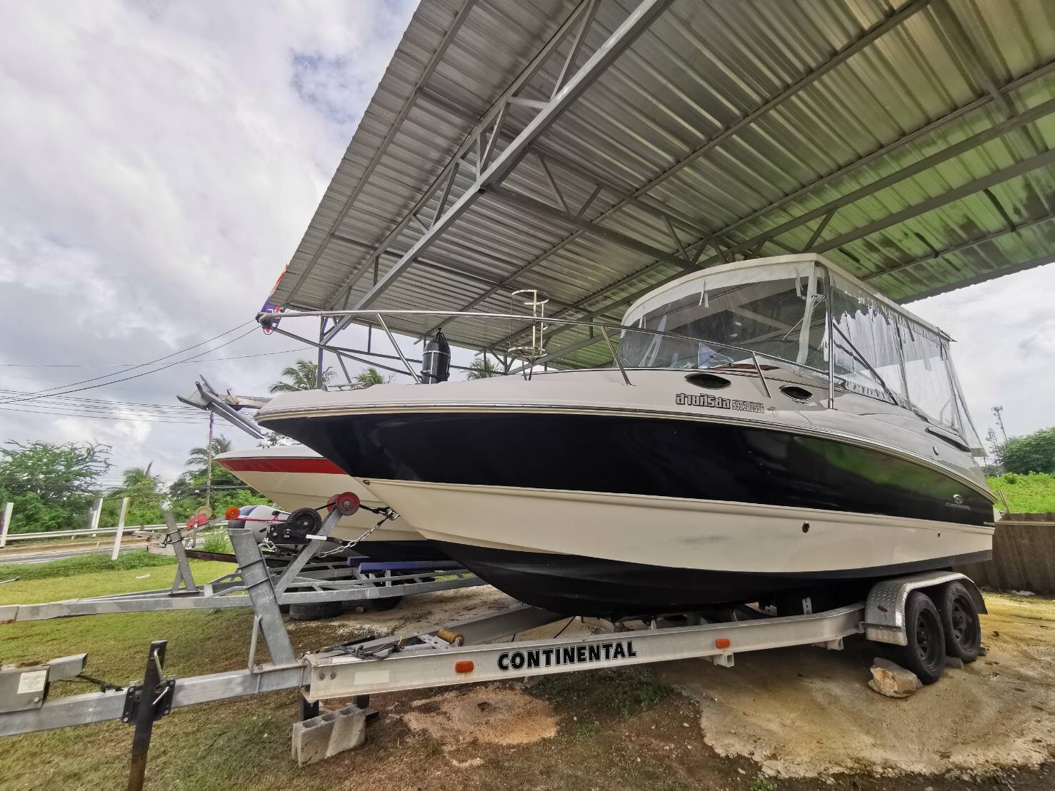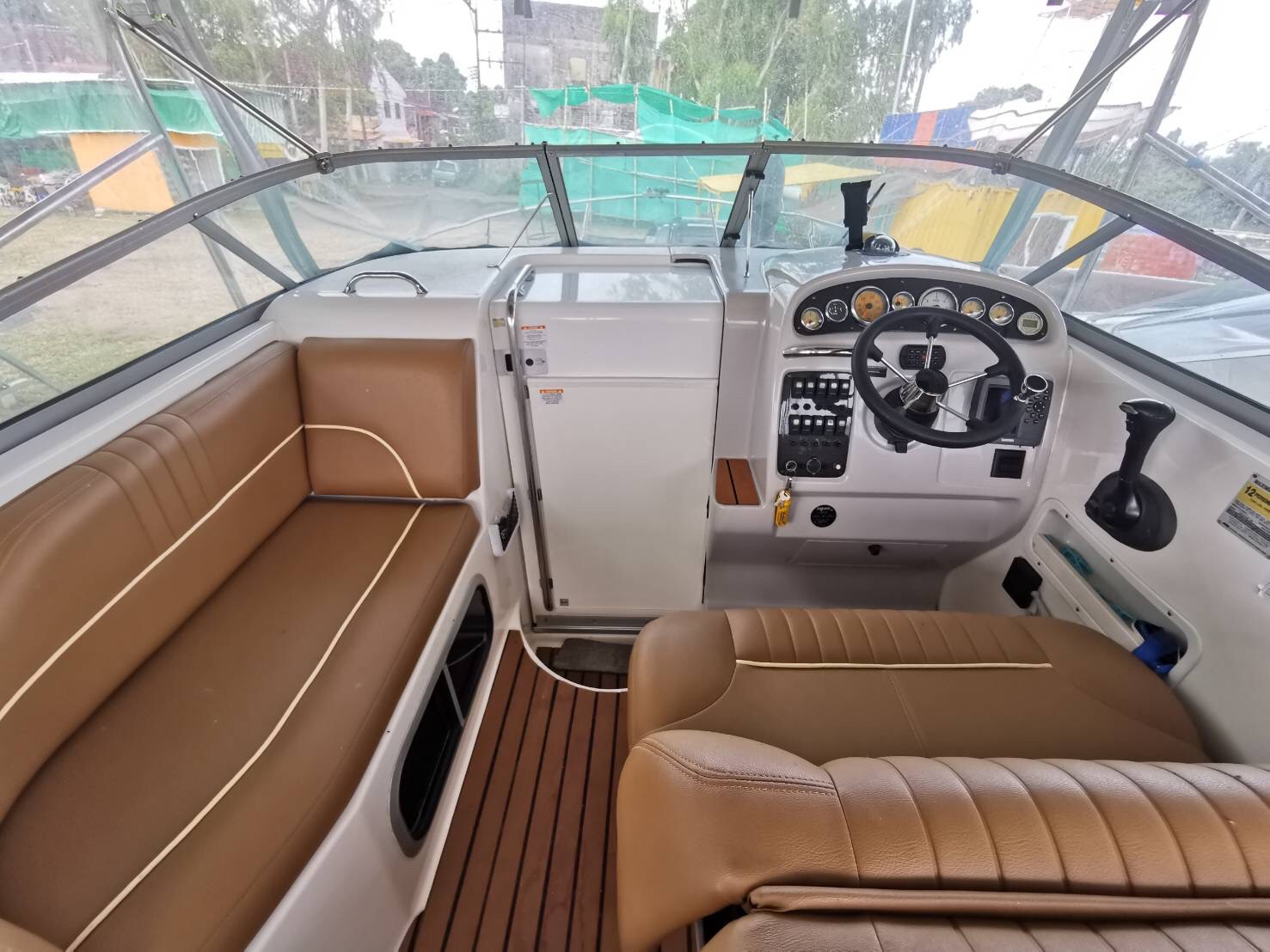 selling a cruising boat Chaparral 240 signature 2006 on a trailer with a Lowrance HDS 12 professional echo sounder and a gas BBQ. There is a solar panel on the roof. The boat has everything you need to go out to sea for a few days and nights: restroom, kitchen, 3 sleeping areas for 5-6 people.