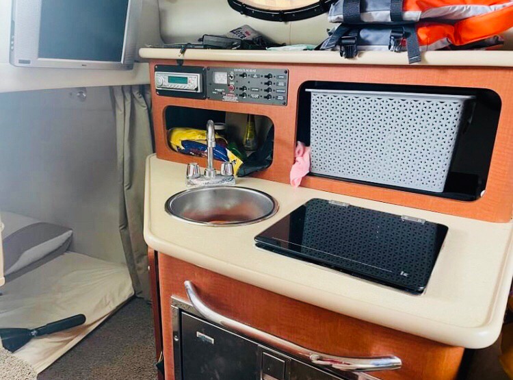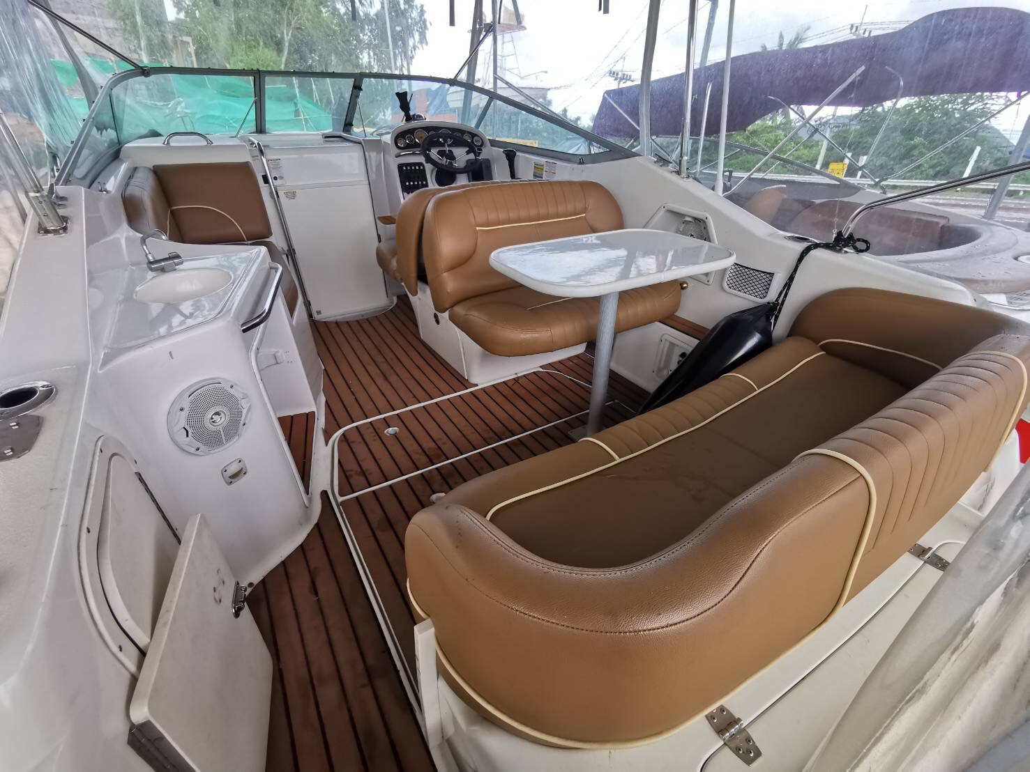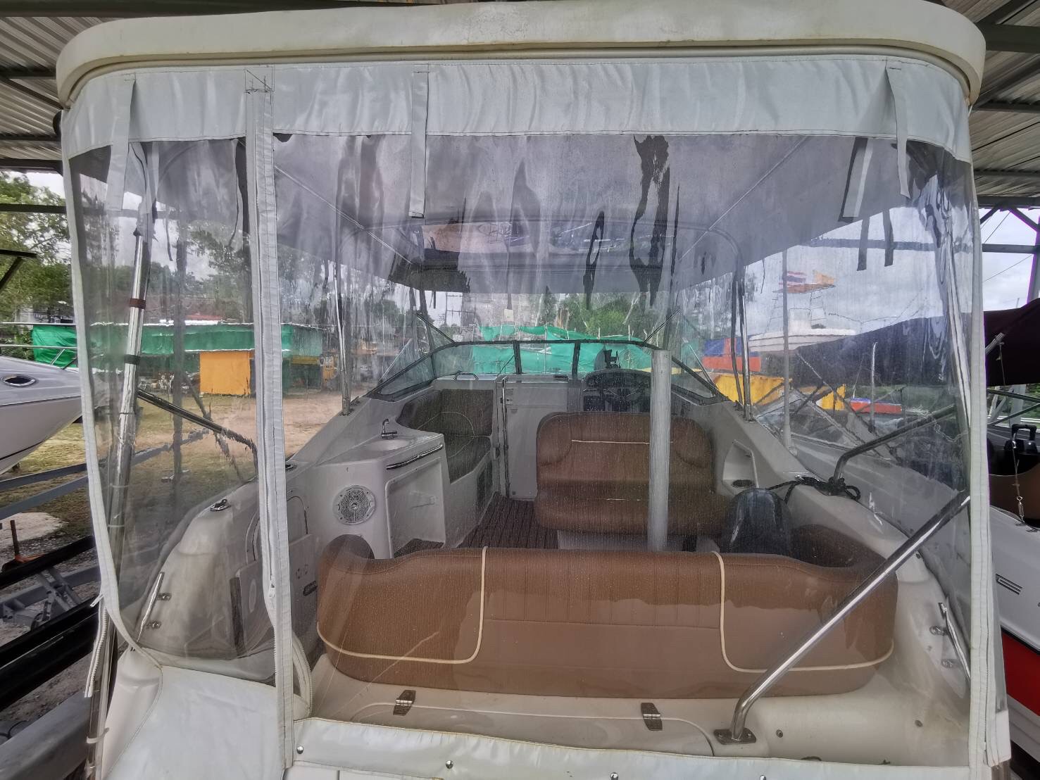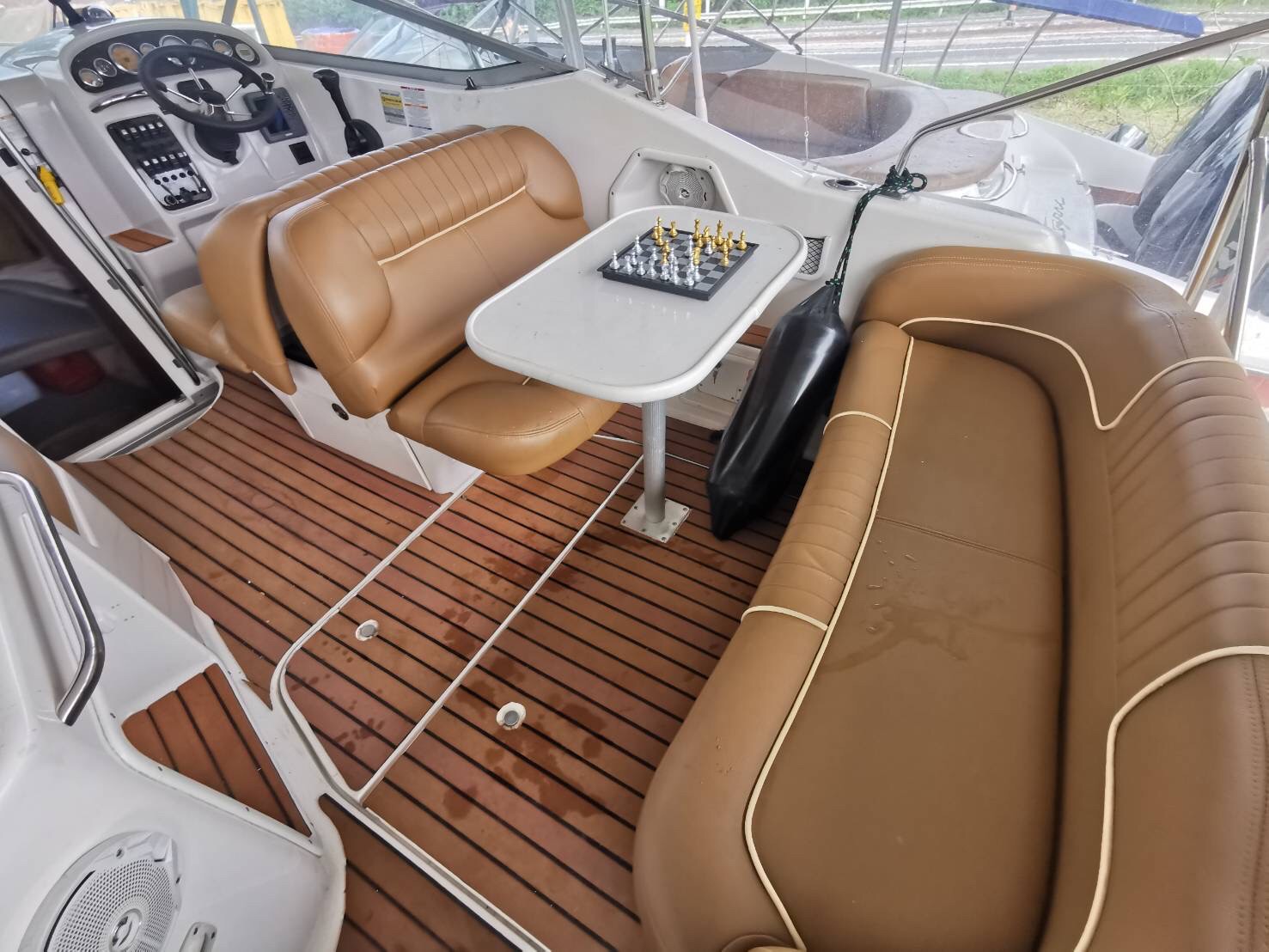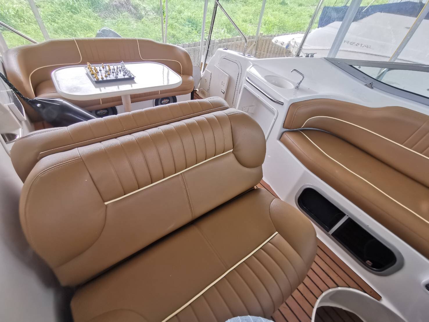 selling a cruising boat Chaparral 240 signature 2006 on a trailer with a Lowrance HDS 12 professional echo sounder and a gas BBQ. There is a solar panel on the roof. The boat has everything you need to go out to sea for a few days and nights: restroom, kitchen, 3 sleeping areas for 5-6 people.