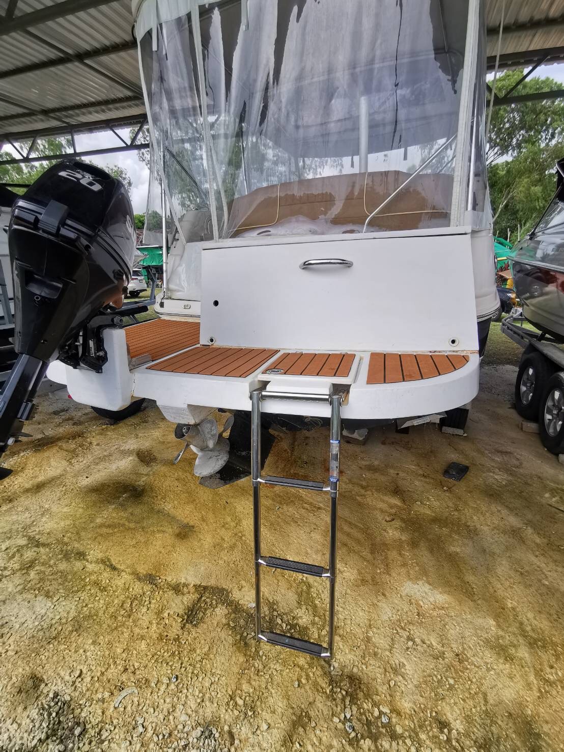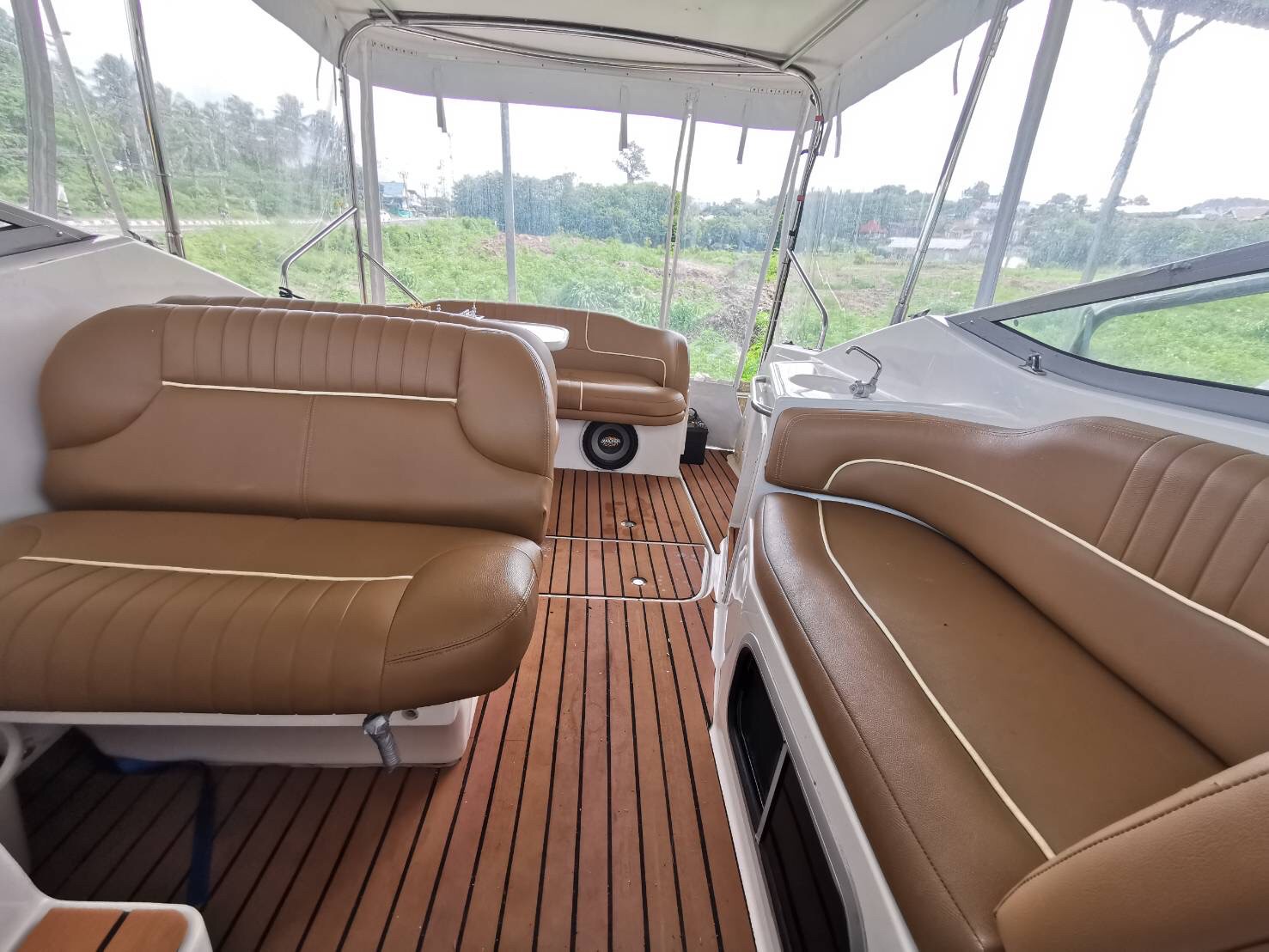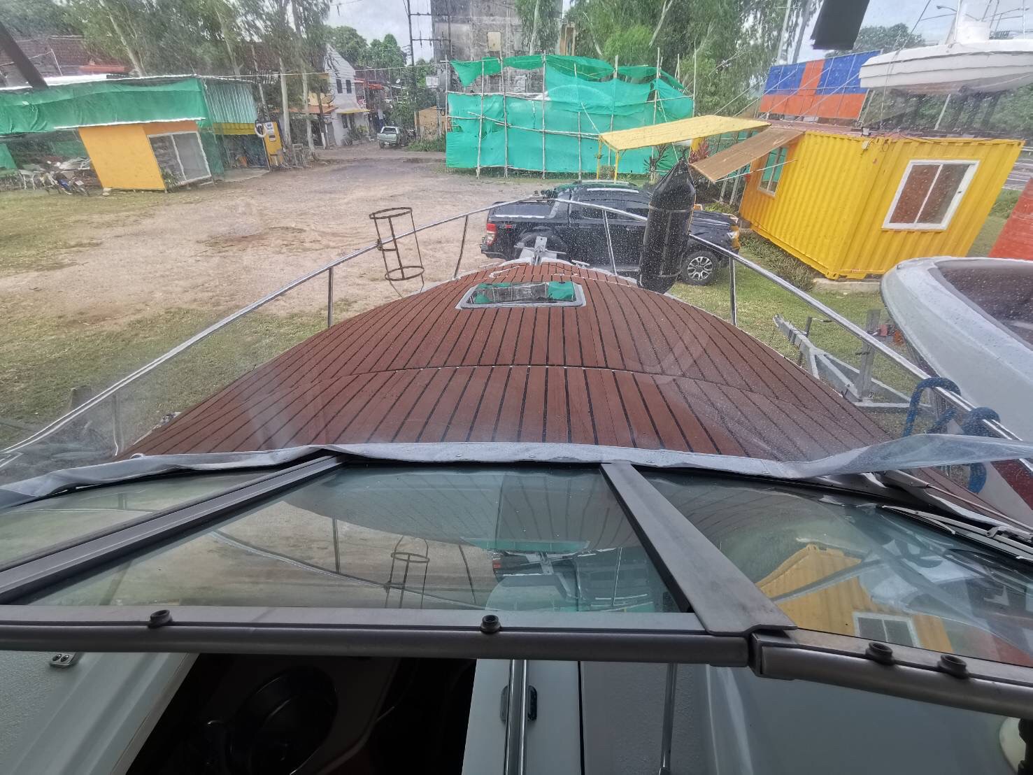 The roof and awning will protect you from the sun and rain. The boat has a large platform for swimming, fishing and a large fish storage box.