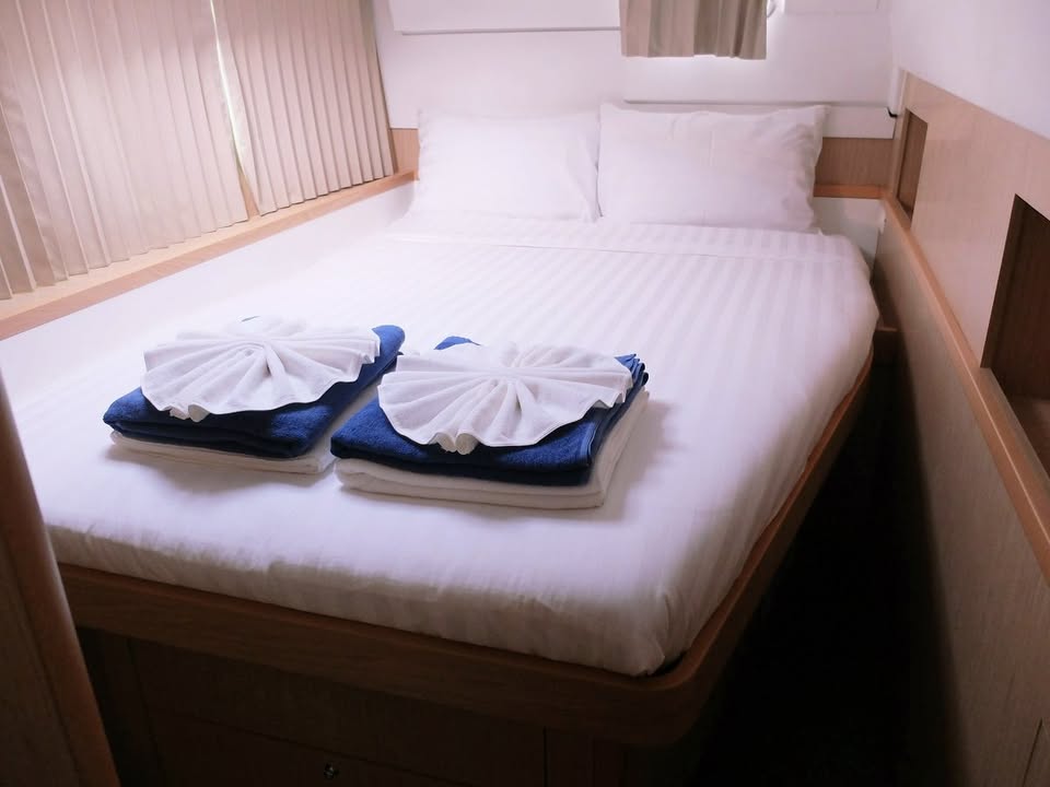4 double cabins. Each cabin has a split system, an electric toilet-shower. Hot water, furniture, lighting. White linen, towels, 220V.