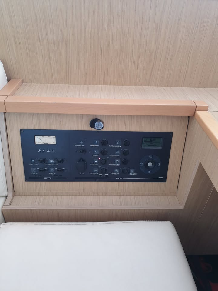 Spacious cockpit, sofas, large table, media center, large refrigerator for drinks.
