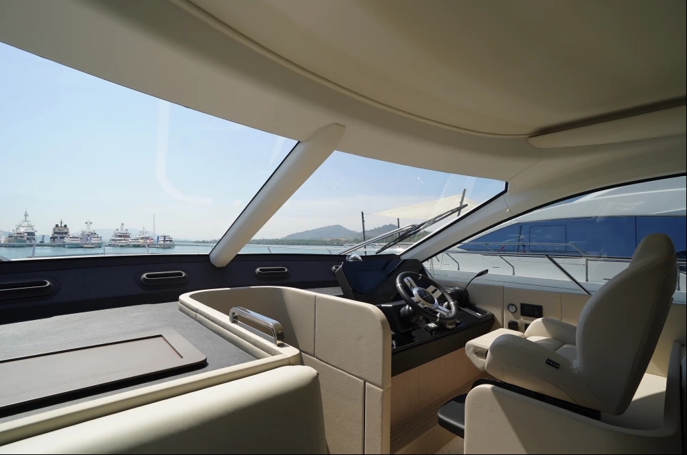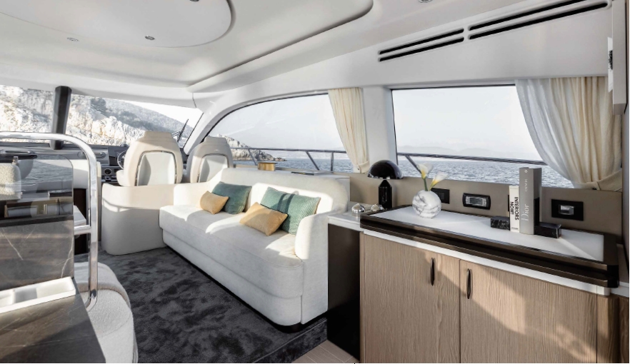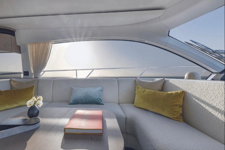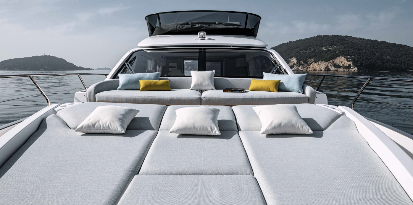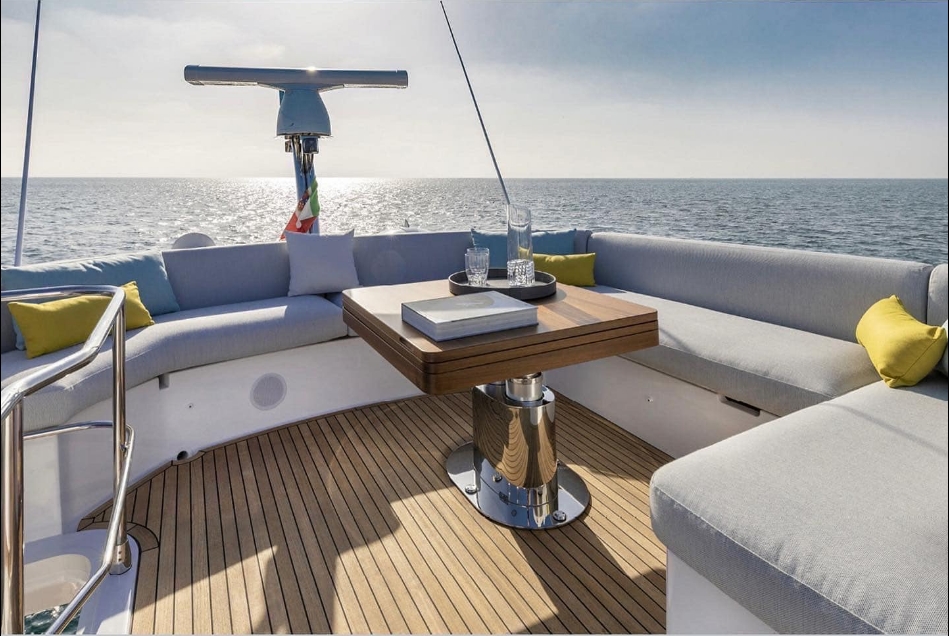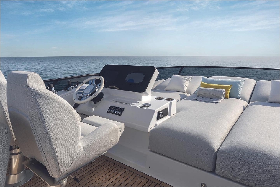 • Flybridge lounge with optional carbon-fiber hardtop or bimini