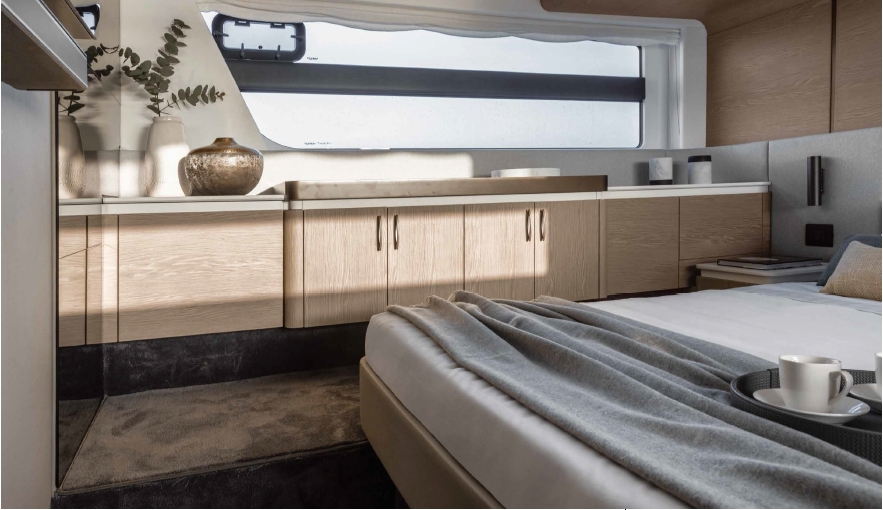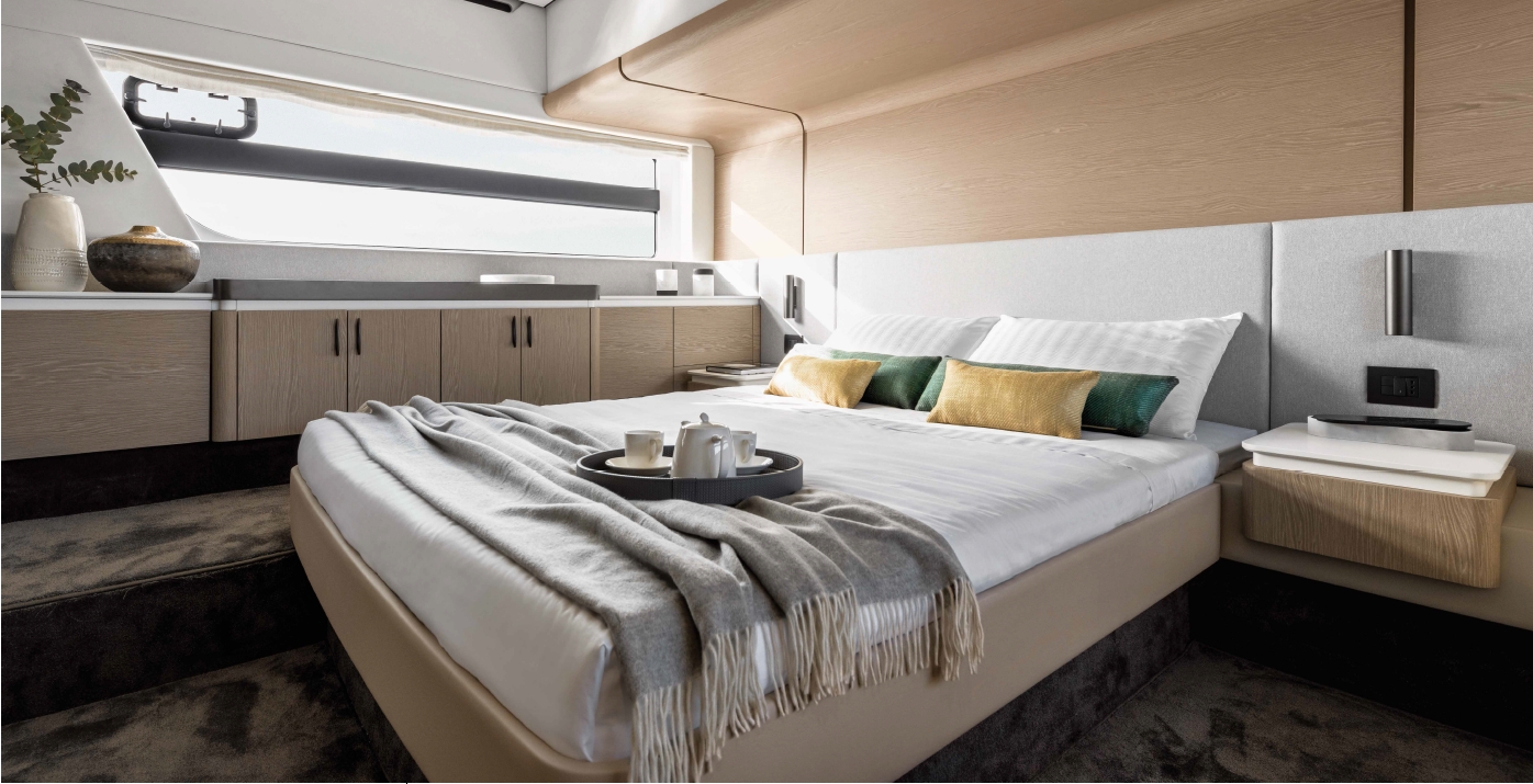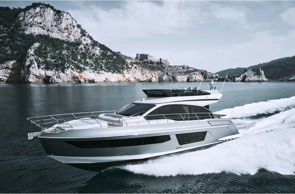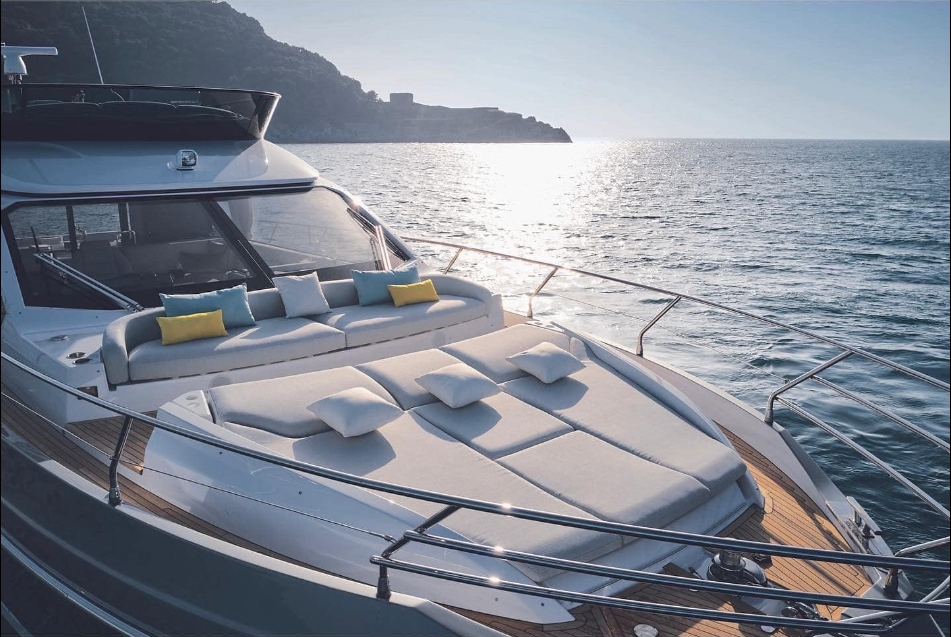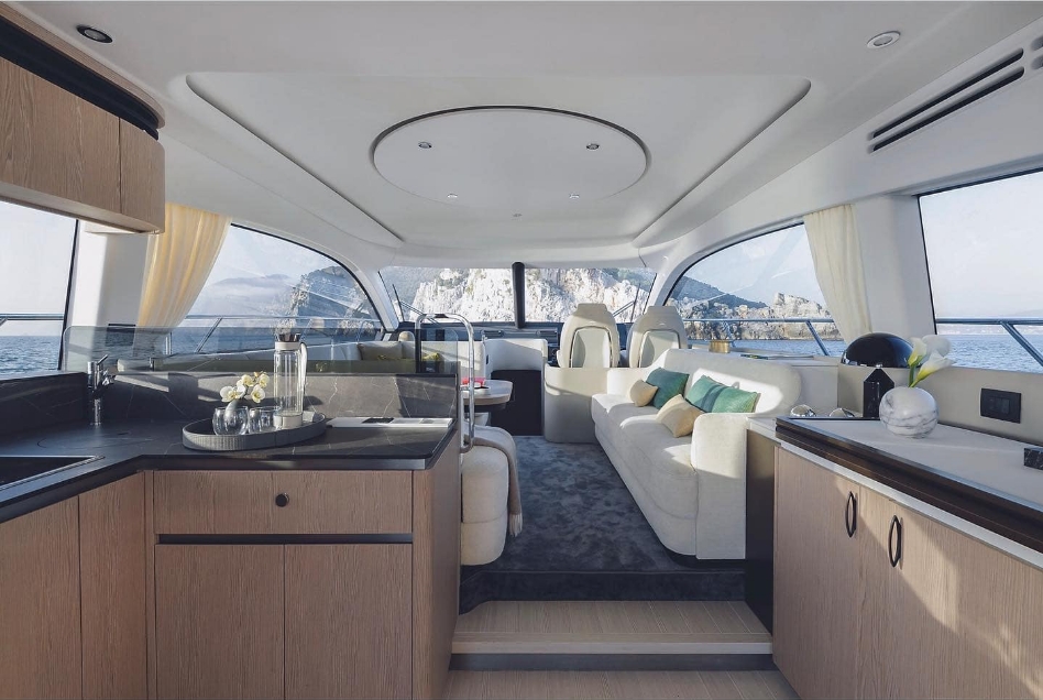 • Flybridge lounge with optional carbon-fiber hardtop or bimini