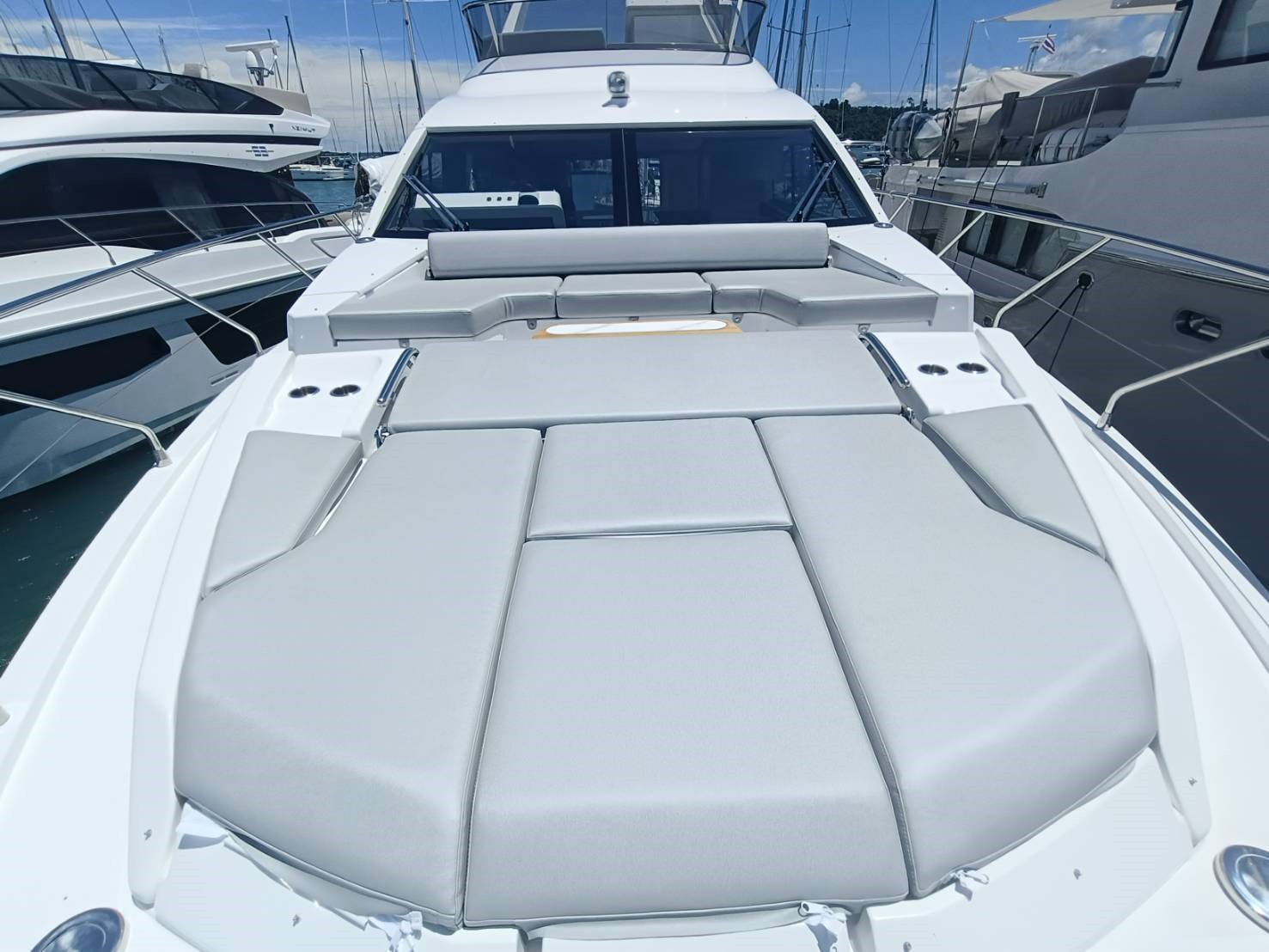 The Azimut Fly 60 is a refined Italian flybridge yacht that blends luxury, performance, and advanced carbon-fiber construction. Designed for effortless cruising, it features expansive outdoor living areas, elegant Achille Salvagni interiors, and cutting-edge systems such as Active Trim Control and electronic power steering. With three spacious guest cabins, panoramic glazing, and a cruising speed of up to 26 knots, the Fly 60 delivers a premium yachting experience for both private use and entertaining.