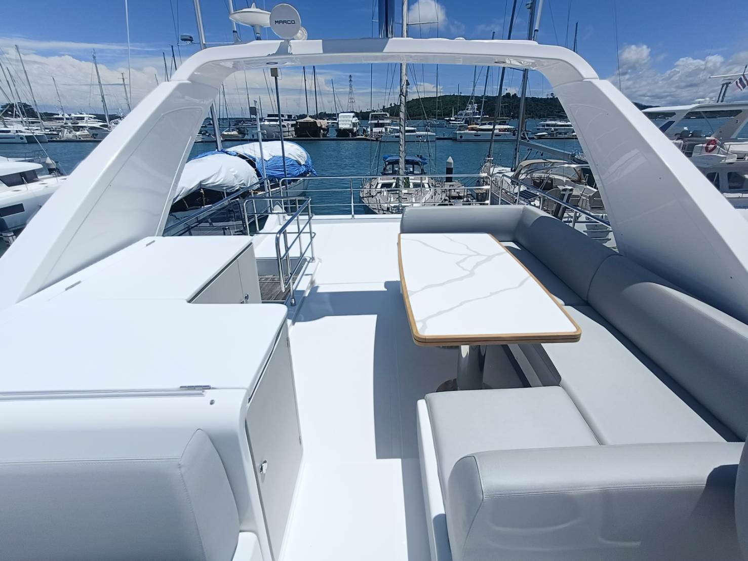 • Flybridge with multiple lounging and dining configurations