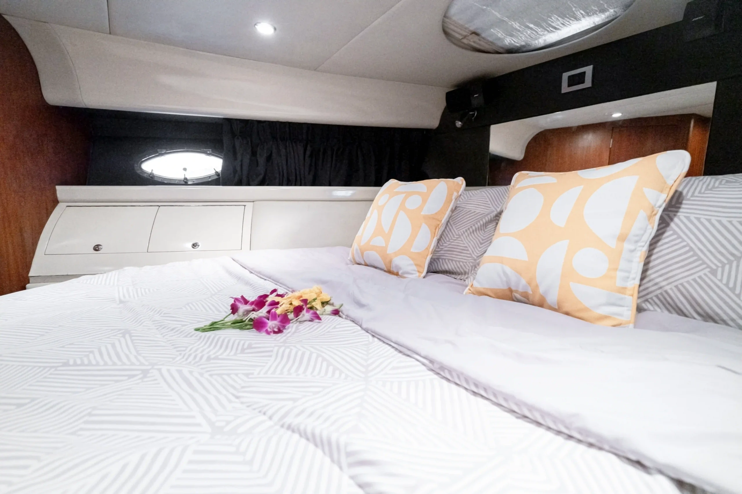 Ideal for couples, families, and groups, this 43-foot yacht offers generous deck space, comfortable seating areas, and a smooth cruising experience whether you’re heading out for a half-day island hop, a sunset cruise, or a full-day adventure to Koh Phangan, Ang Thong National Marine Park, or Koh Tao.