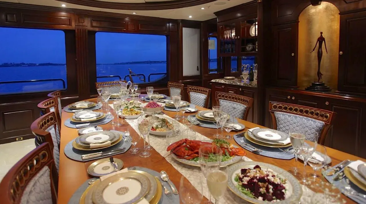 The superyacht “Purpose” offers a luxurious experience at sea, accommodating up to 12 guests and a crew of 12, including the captain. Built by Trinity Yachts in the United States and delivered in 2005 , “Purpose” features a steel hull and aluminum superstructure. Her exterior design and naval architecture are by Trinity Yachts, while Dee Robinson Interiors handled the interior design.
