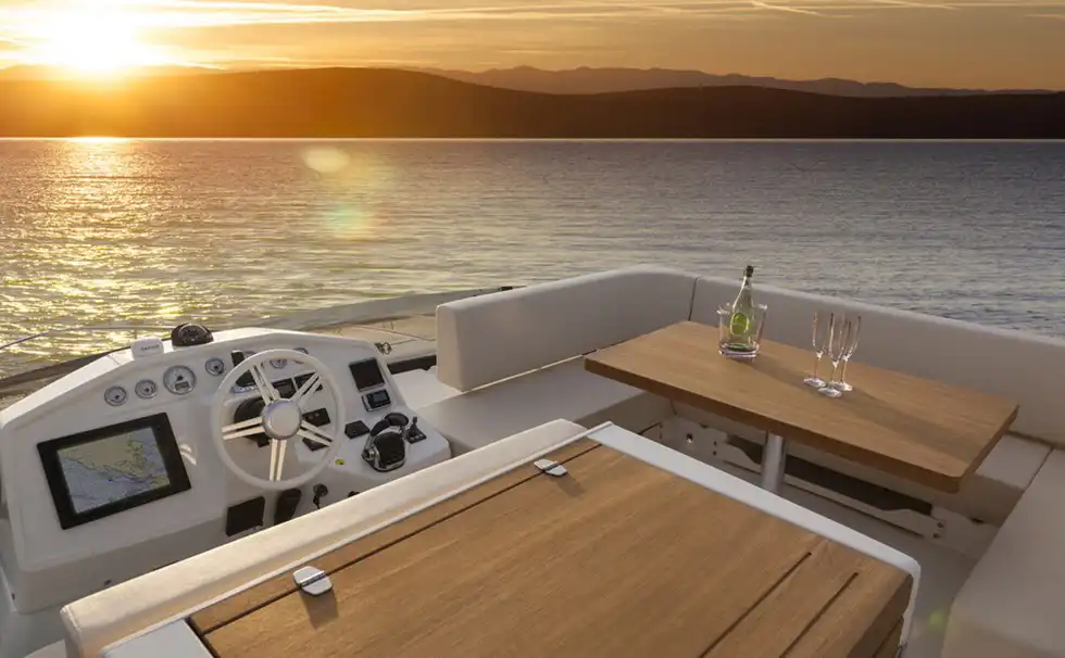 The comfort in navigation is another of the strengths of this yacht. Both indoors and outdoors, there are spaces with great attention to ergonomics and equipped with quality materials. The fittings are extremely accurate and free of smudges, as well as the assemblies and systems, easily inspected: nothing can disturb the relaxation during the cruise.